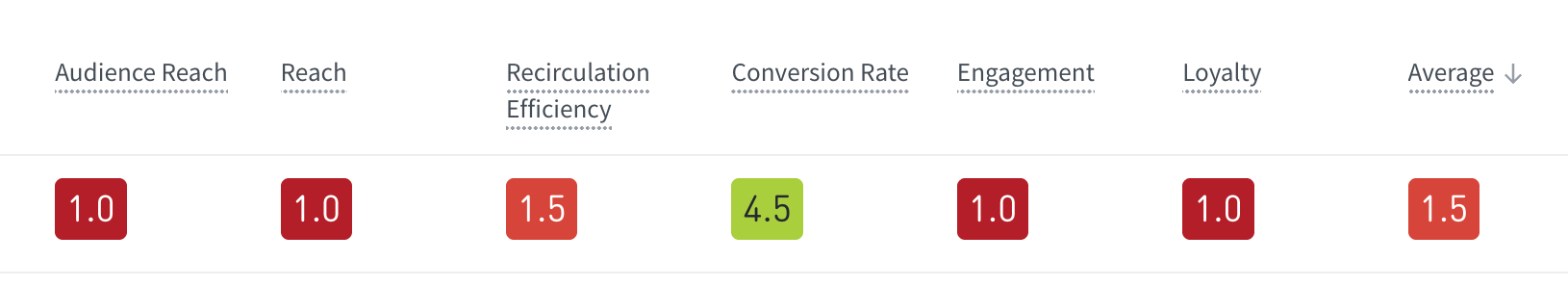 Why it matters: A high Conversion Rate score directly ties content to business outcomes. This is often the most important KPI for sites focused on subscription growth or lead generation.