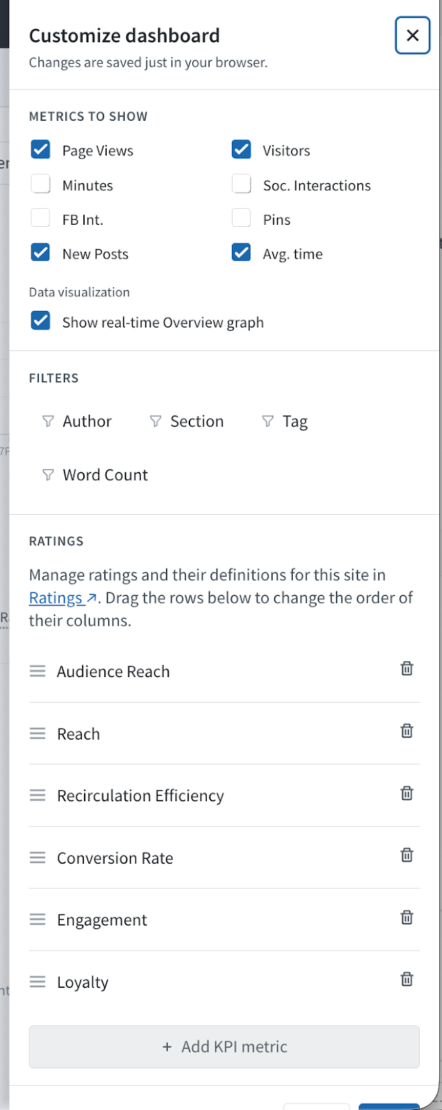 Not all KPIs need to appear in the view. To customize which KPIs are shown: