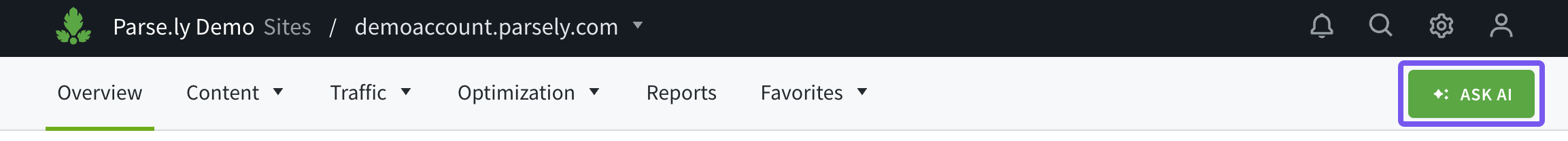 If you need to turn off Parse.ly Sage for any reason, contact Parse.ly Support at support@parsely.com, and it will be disabled on your account. Once disabled, the “Ask AI” button will no longer appear in the Dashboard.